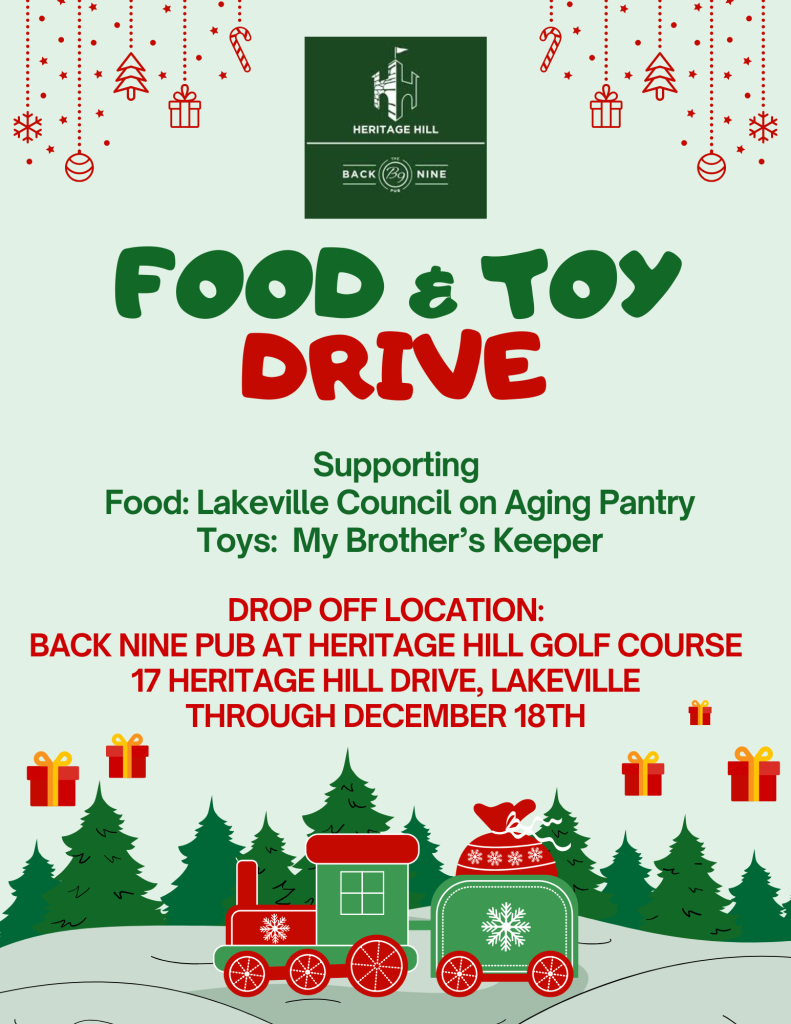 Bring an unwrapped toy or non-perishable food item to support Back Nine Pub as they bring the donations for food to the Lakeville Council on Aging Food Pantry and toys to My Brother’s Keeper in Dartmouth. See flyer below under registration form.